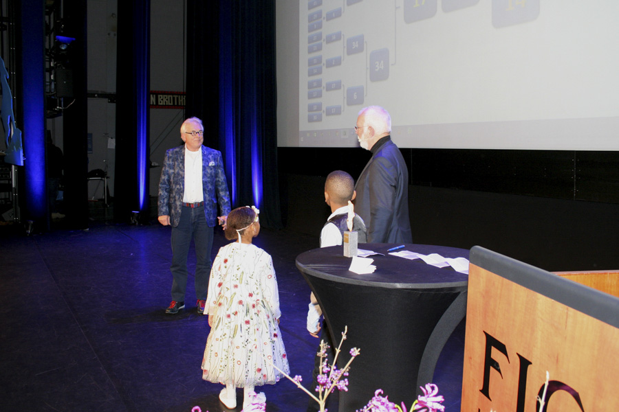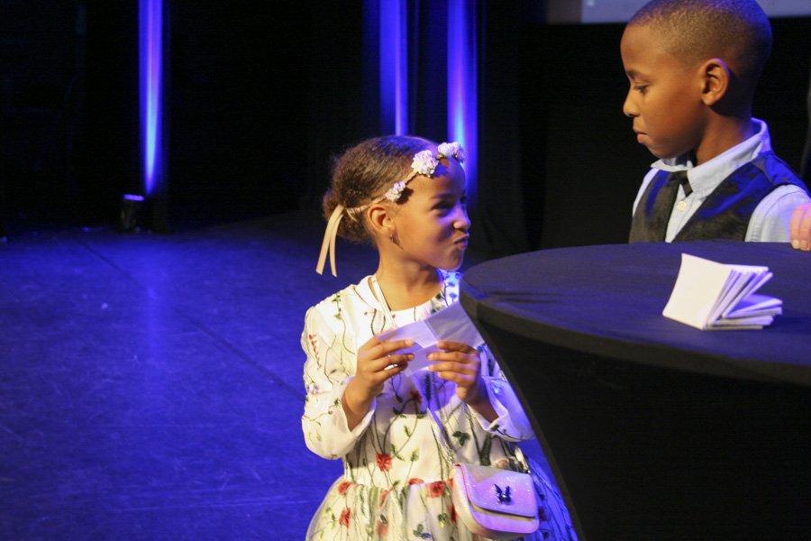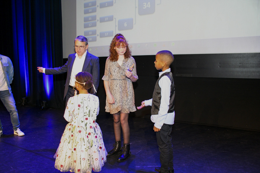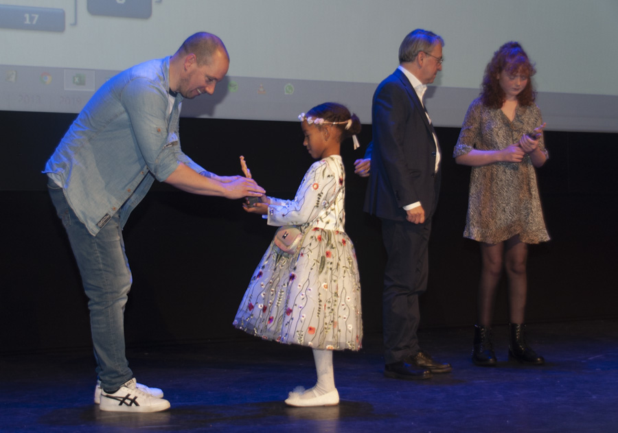 Twee jonge presentators in de dop, Gabriël en Alice, trokken de lootjes en meteen ook alle aandacht. Vooral Alice bleek een toneeltijger in haar prachtige jurk. Het publiek bepaalde vervolgens de winnende films middels zitten en opstaan in de competitie, waarbij steeds 2 overgebleven films streden om de volgende ronde.
